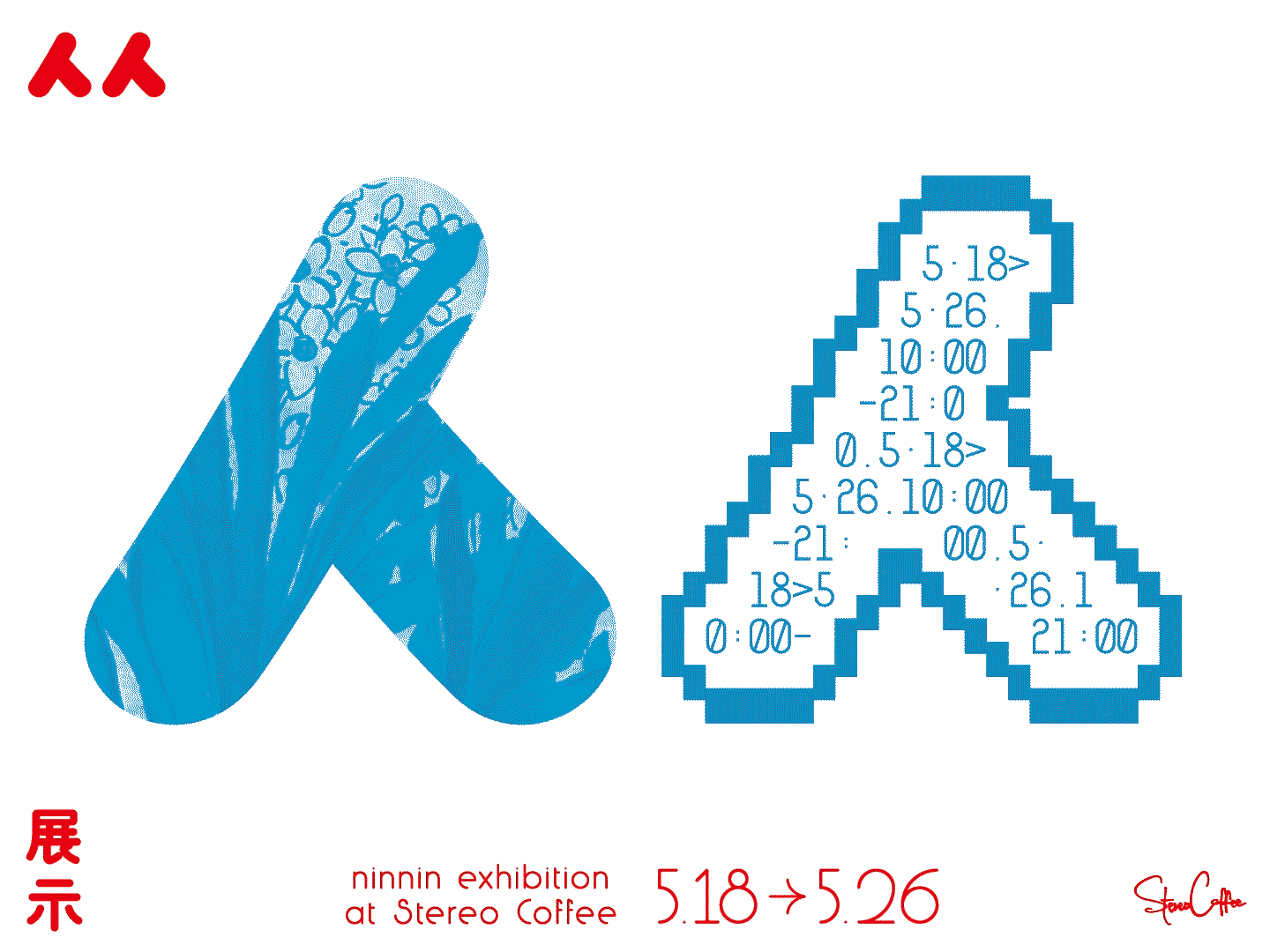 Ninnin ExhibitionCreative Direction: NinninArt Direction: Yuko Koike / Zin NagaoGraphic Design: Yuko Koike / Zin NagaoPhoto: Kyohei YoshinoClient: STEREO COFFEE